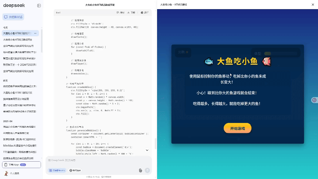 而且生成一个这种大鱼吃小鱼的游戏,也是手拿把掐