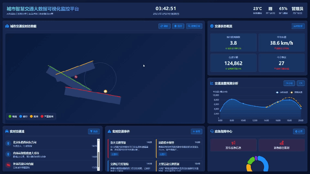 比如测试生成的城市智慧交通大数据可视化监控平台